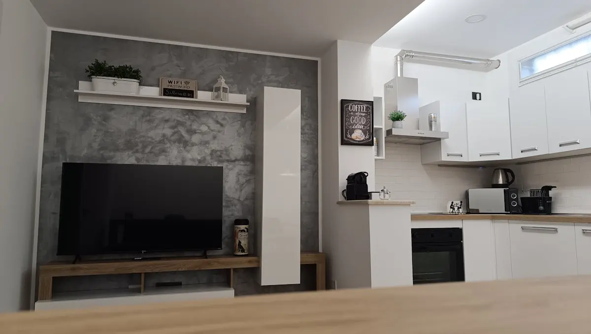 Lasciati conquistare da questo accogliente appartamento dal design contemporaneo, dove comfort e stile si incontrano per offrirti un soggiorno indimenticabile. La luminosa zona living, con TV a schermo piatto e dettagli curati, è il luogo ideale per rilassarti dopo una giornata di escursioni o visite culturali, oppure dopo un'intensa giornata di lavoro.