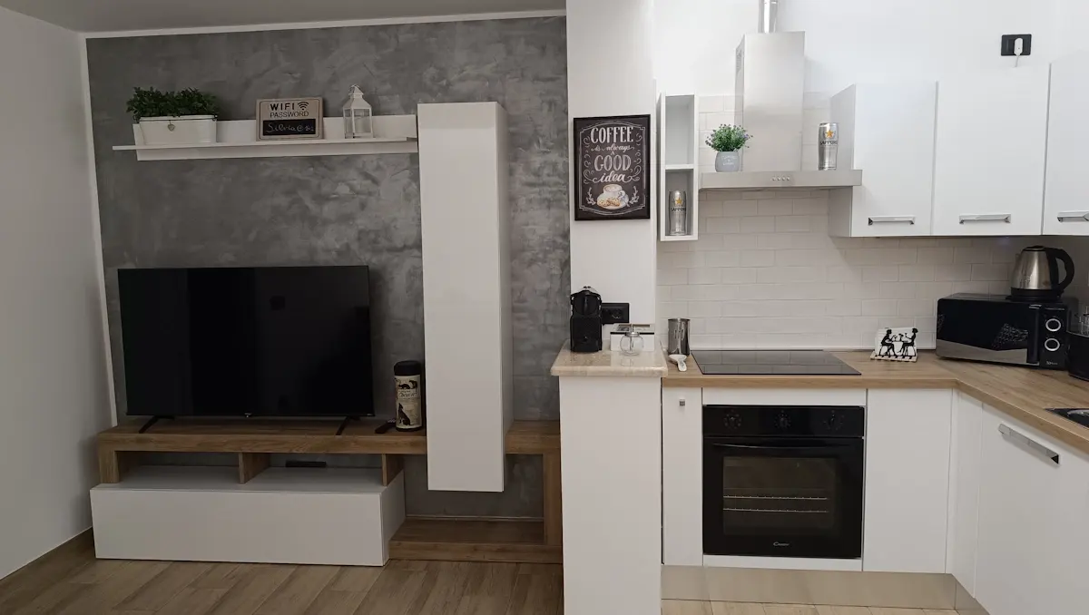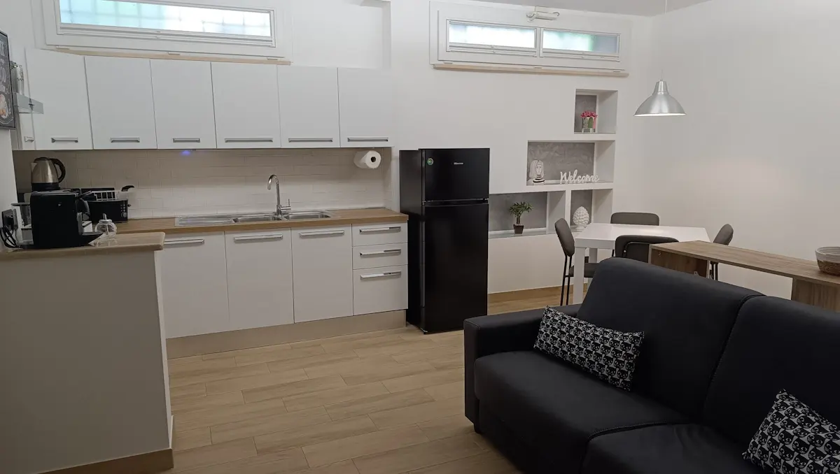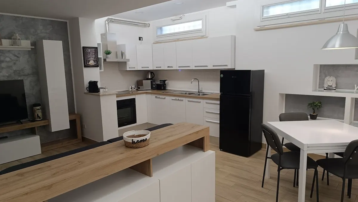 La cucina, moderna e completamente attrezzata, offre tutto ciò che serve per vivere il soggiorno in totale autonomia e comfort.
